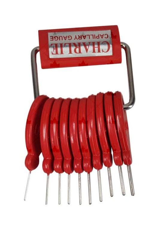 این لوله مویی سنج دارای دسته پلاستیکی است و اندازه هر فیلر به روی دسته هک شده است. جنس فیلر های از فولاد سخت می باشد و نوک فیلر ها دارای زوایه ای نرم می باشد تا از خراش درون لوله جلوگیری گردد
