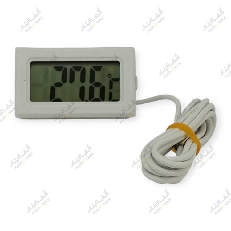 دماسنج پنلی کوچک با نمایشگر LCD و پراب ضدآب، مناسب نصب توکار در پنل دستگاهها، یخچال و آکواریوم. این مدلها معمولاً با دو باتری LR44 کار میکنند و در ابعاد تقریباً 48×28.5×≈15 میلیمتر طراحی میشوند.
