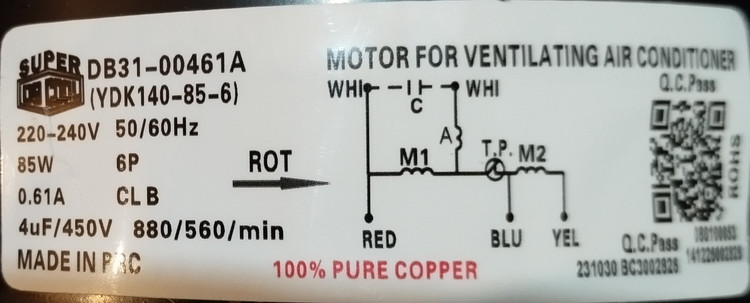 این فن فابریکی کولرهای 30 و 32 هزار سامسونگ با فیش فابریک سه سیم به اضافه سیم های خازن هستند