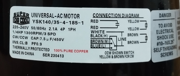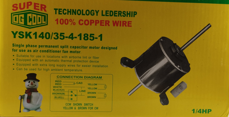 موتور فن کولر پنجره ای یونیورسال یا سوپرائی 1/4HP سیم پیچ مس مدل YSK140/35-4-185-1