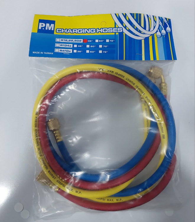 شیلنگ گیج PM ساخت کشور تایوان در بسته بندی های سه عددی به رنگهای قرمز آبی و زرد ارائه میشود.که تحمل فشار بالایی دارند.و سری این شیلنگها مناسب گازهای 22,134,12,404,507,600 میباشد.طول شیلنگ گیج PM در سه سایز 90,150،180 سانتیمتر موجود میباشد.