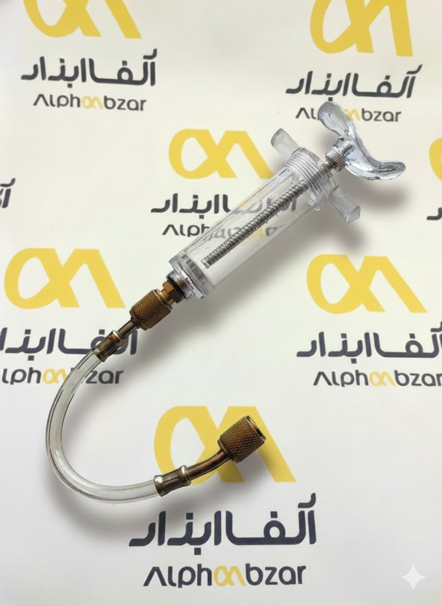 سرنگ تزریق روغن کمپرسور به همراه شیلنگ رابط مخصوص
