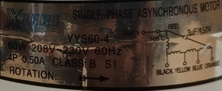 این موتور فن 75 وات و 6 قطبی، مختص نصب در یونیت بیرونی یا کندانسور کولرهای گازی و اسپلیت کنوود، جنرال گلد، سوپر جنرال و تراست طراحی شده است. جریان کاری آن 220VAC 50Hz بوده و آمپر نامی آن 0.68A میباشد. ظرفیت خازن راهاندازی که این قطعه نیاز دارد نیز، 5 میکروفاراد با ولتاژ 450 ولت است. طول بدنۀ موتور فن و میلۀ شافت بهکاررفته در آن، هردو برابر با 90 میلیمتر بوده و قطر شافت تعبیهشده در این تجهیز 12 میلیمتر میباشد. گفتنی است که جنس سیمپیچ این قطعه مس خالص است و جهت حرکت پرههای موجود در آن ساعتگرد میباشد.