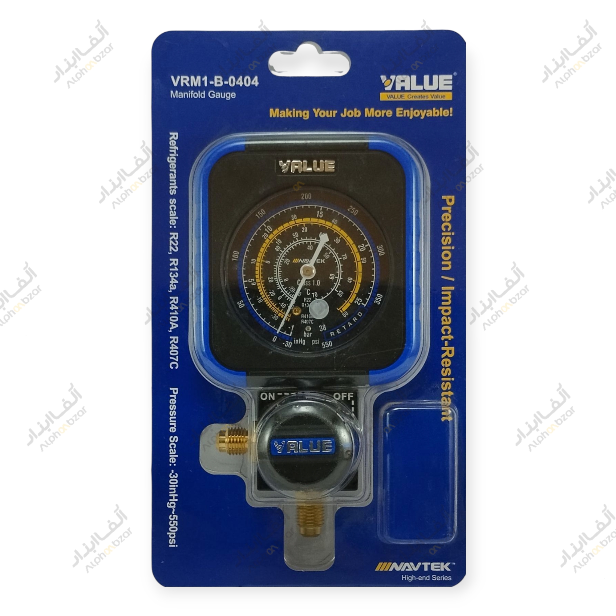 گیج منیفولد تکی شارژ گاز نیم دور آبی فشار پایین برند والیو VALUE مدل VRM1-B-0404