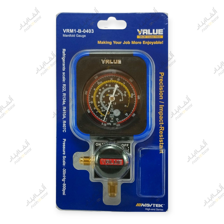 گیجهای VALUE با کیفیت و دقت بالا ساخته میشوند. به وسیله ی این گیج ها میتوانید فشار مسیر های سیستم برودتی را سنجیده و همچنین در شارژ کردن گازهای برودتی یکی از ابزاری ضروری محسوب می شوند. از گیچ قرمز رنگ جهت سنجیدن فشار قسمت فشار بالا تا فشار زیر PSI 800 استفاده می گردد.