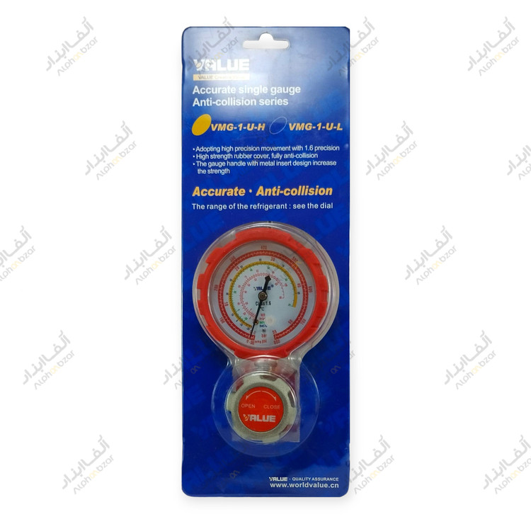 گیج منیفولد تکی شارژ گاز قرمز شیر دار والیو VALUE مدل VMG-1-U-H